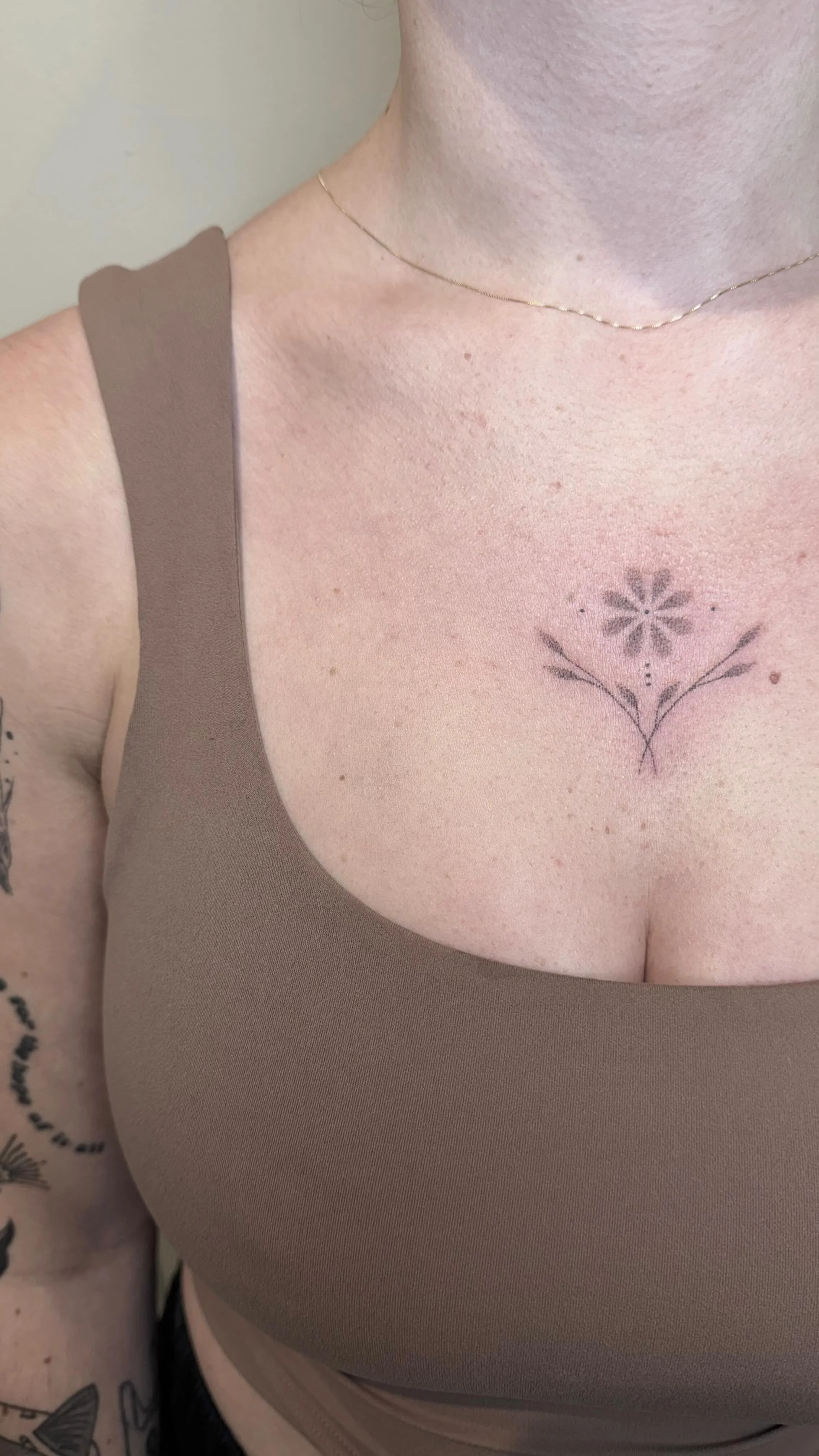 To give a little bit of background, I grew up in southern California within what I would call a moderately conservative household. I think I always understood myself to be a deeply creative and also fairly conflicted person. The structures that existed with my home and the ones I was expected to build a life within felt misaligned, rigid, maybe a bit suffocating, and as I gained perspective through my own life experiences, I was able to recognize that my path toward fulfillment and wholeness wouldn't likely fit within the aforementioned structures. That my choices would probably look a little different... which is how I ended up here in Minnesota tattooing! In 2011, I enrolled in my freshman year at a university to study design, realized I could not afford to continue beyond that first year and so instead decided to go to cosmetology school. I moved around the country a bit continuing to do hair, until I was offered an opportunity to learn a bit more about the aesthetics side of my license. During the next 3 years, I would build a cliental in brow shapings among other esthetic services and then eventually would pivot toward cosmetic tattooing (and later, handpoke tattooing). In March of 2021, I went to Los Angeles to complete my foundational cosmetic tattooing certification. Shortly after that, I secured a tattooing apprenticeship in Minneapolis and moved to Minnesota that summer. Since the completion of my apprenticeship, I've worked to strengthen and expand my skillset through various classes, workshops and collaborative forum with other industry professionals. My hope is that we are able to continue to elevate the client experience as we learn, grow and evolve alongside the ever-changing tattooing industry.
