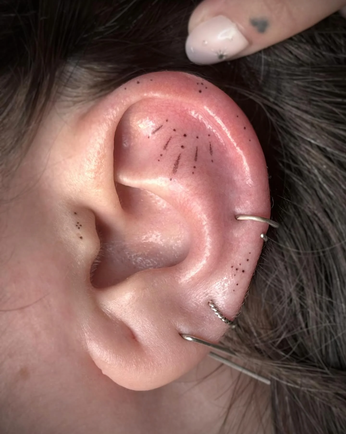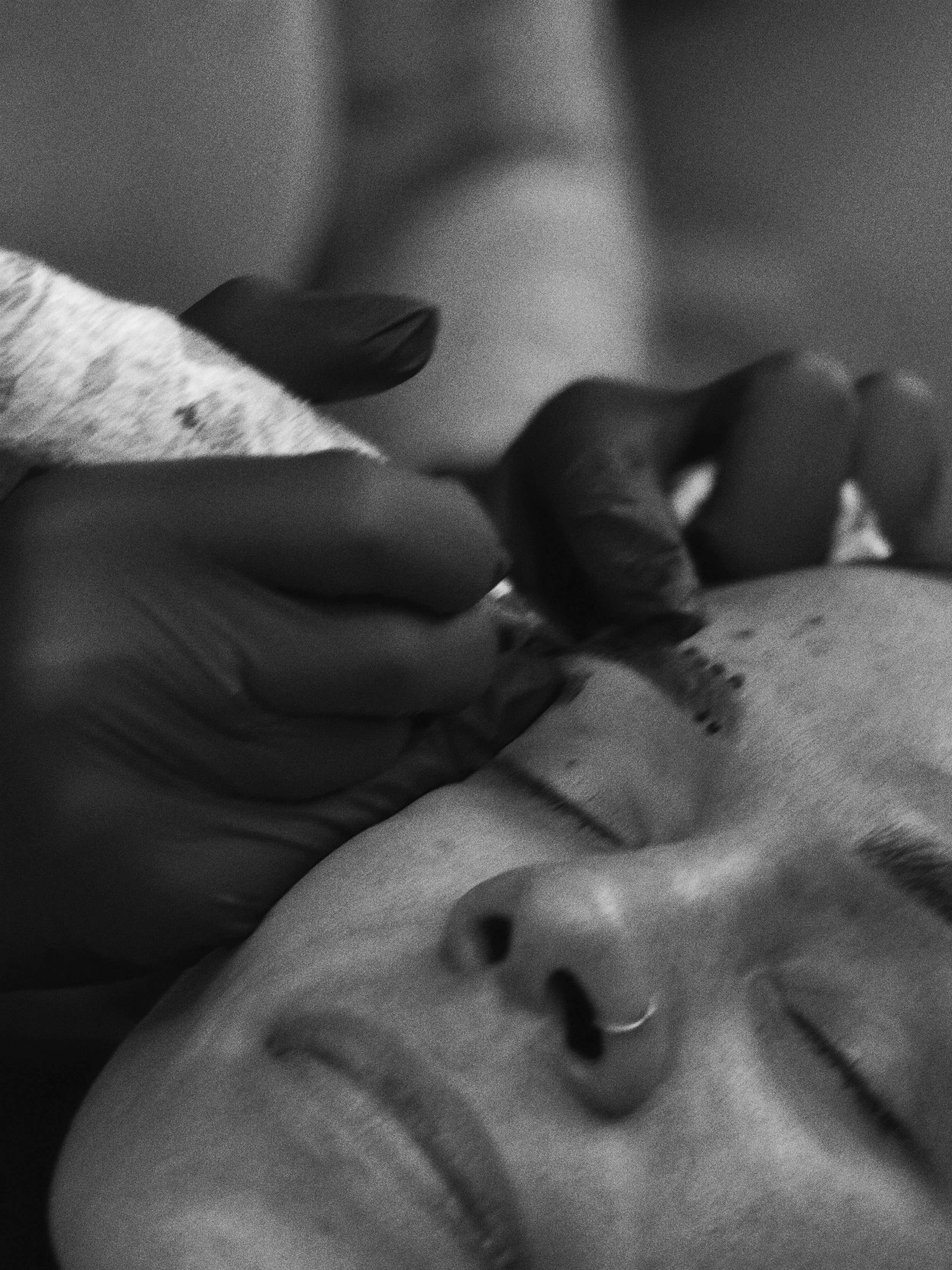 Handpoke tattooing is an ancient, manual method of tattooing where each dot of ink is carefully implanted into the skin by hand using a tattoo needle and ink. This technique creates a quieter, more intimate, even meditative client experience - one resulting in soft, delicate, detailed tattoos that work in conjunction with your body.
